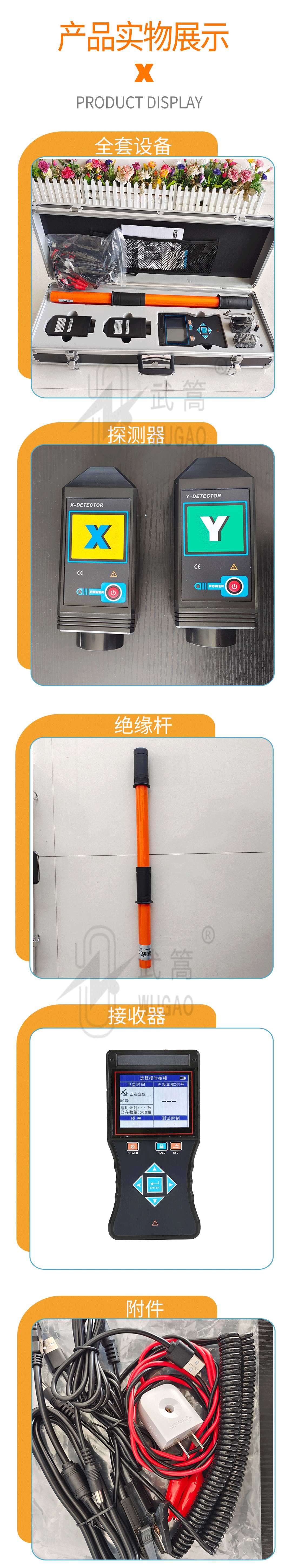 由無線接收器、探測器、伸縮絕緣桿等組成。